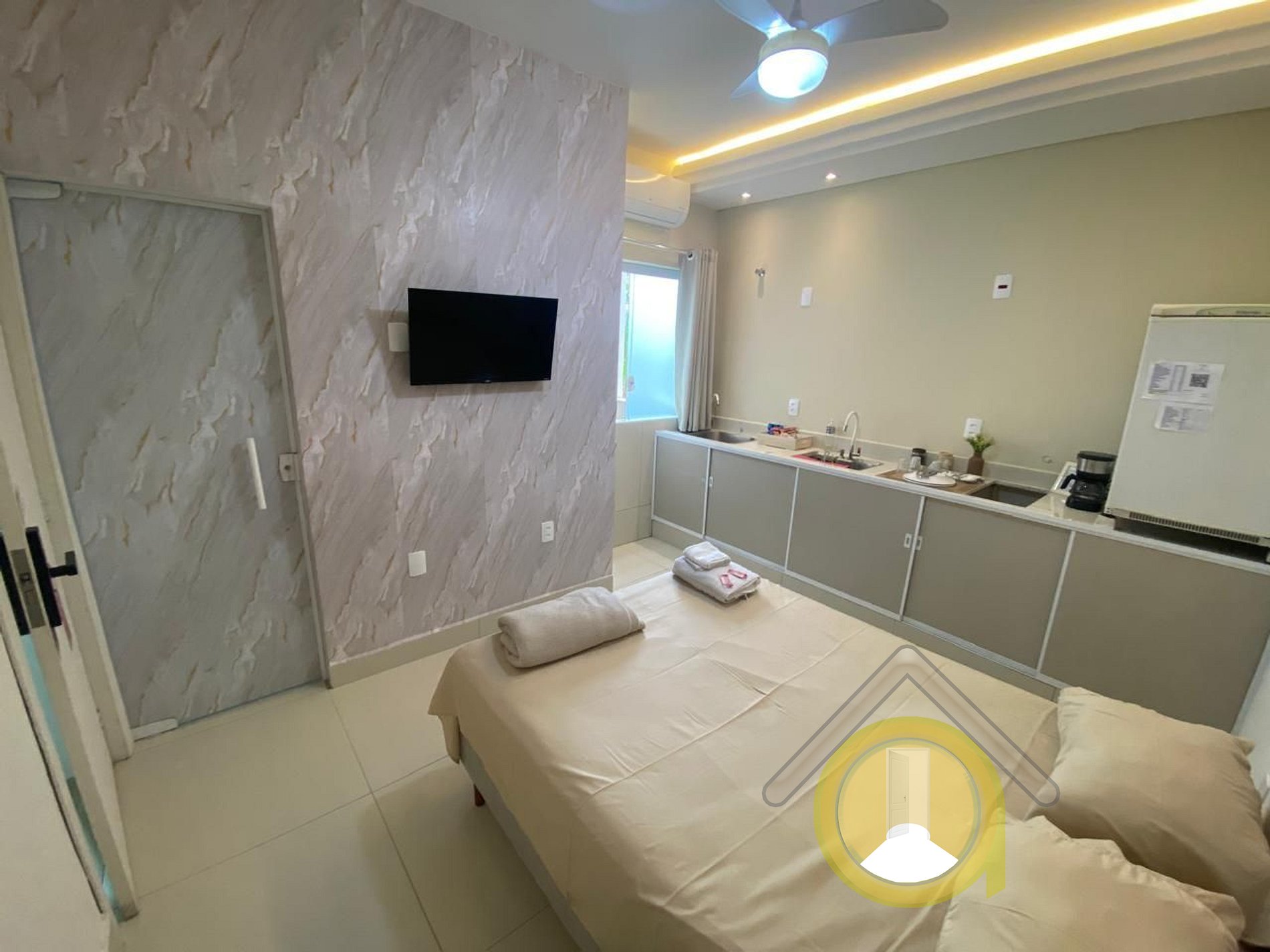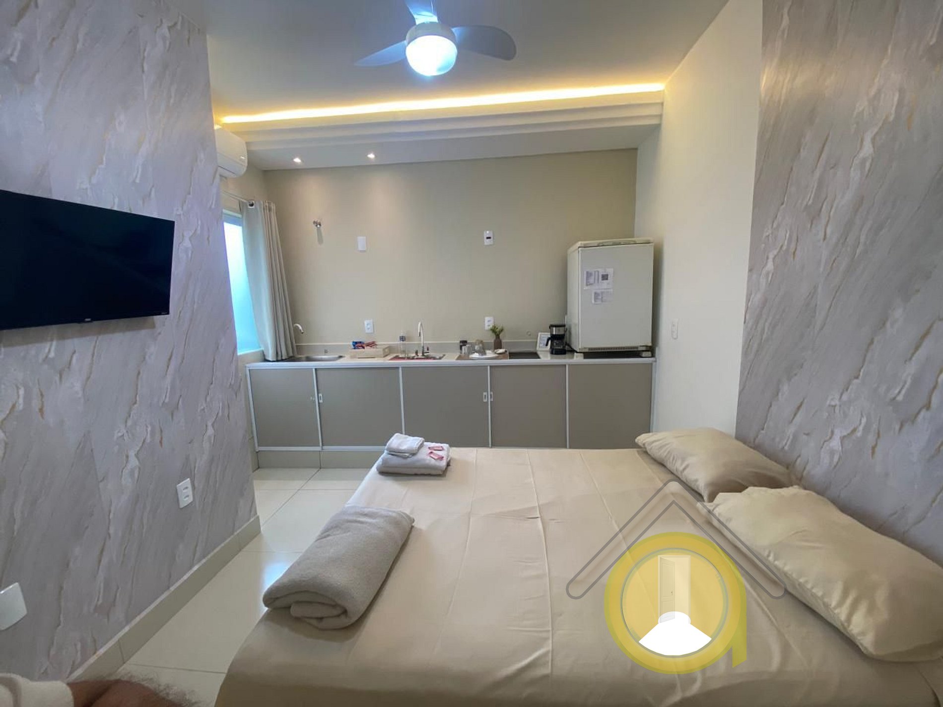 Somos Kitnet Hotel Studio Digital e mobiliado com cozinha, somos construídos pelos sistema construtivo inteligente de parede de isopor, No Frio não faz Frio e no Calor não Faz calor, todo acesso do prédio e das kitnet sao com senhas e disponibilizamos uma loja de conveniência 24H automatizada vendendo de tudo um pouco para os moradores e hospedes, e ainda, temos uma lavanderia Self Service.
