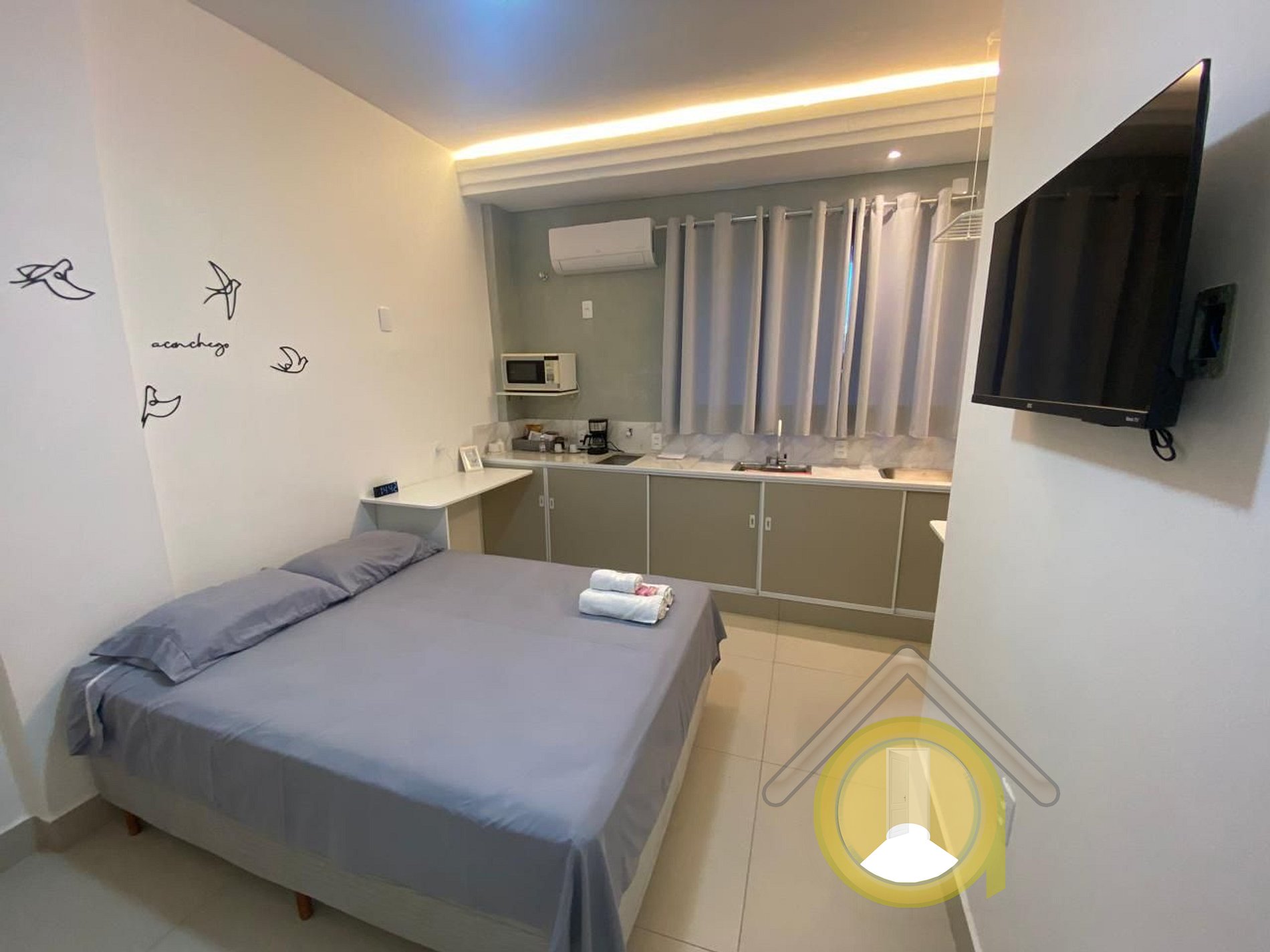 Somos Kitnet Hotel Studio Digital e mobiliado com cozinha, somos construídos pelos sistema construtivo inteligente de parede de isopor, No Frio não faz Frio e no Calor não Faz calor, todo acesso do prédio e das kitnet sao com senhas e disponibilizamos uma loja de conveniência 24H automatizada vendendo de tudo um pouco para os moradores e hospedes, e ainda, temos uma lavanderia Self Service.